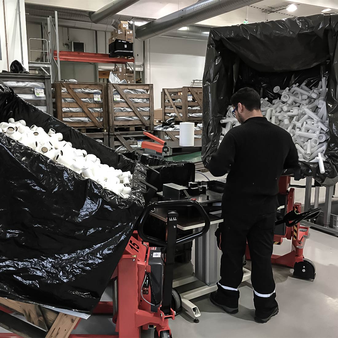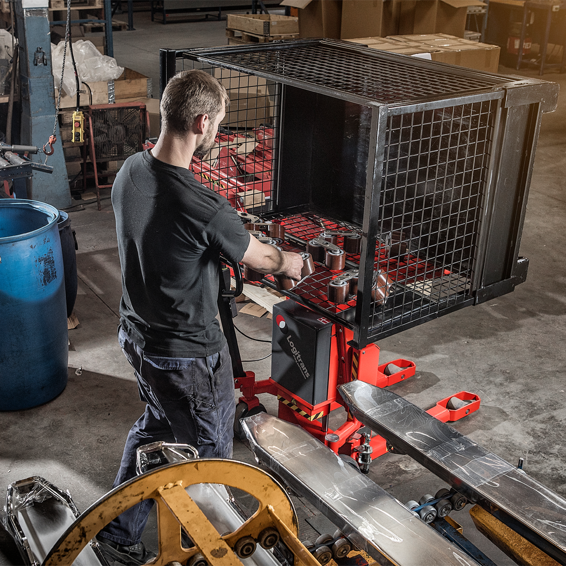 The Logitilt can tilt boxes and crates up to 90º. The user does not have to bend down or stretch up to reach the items in the bottom of the crate or box - this applies both to standing and sitting work positions.