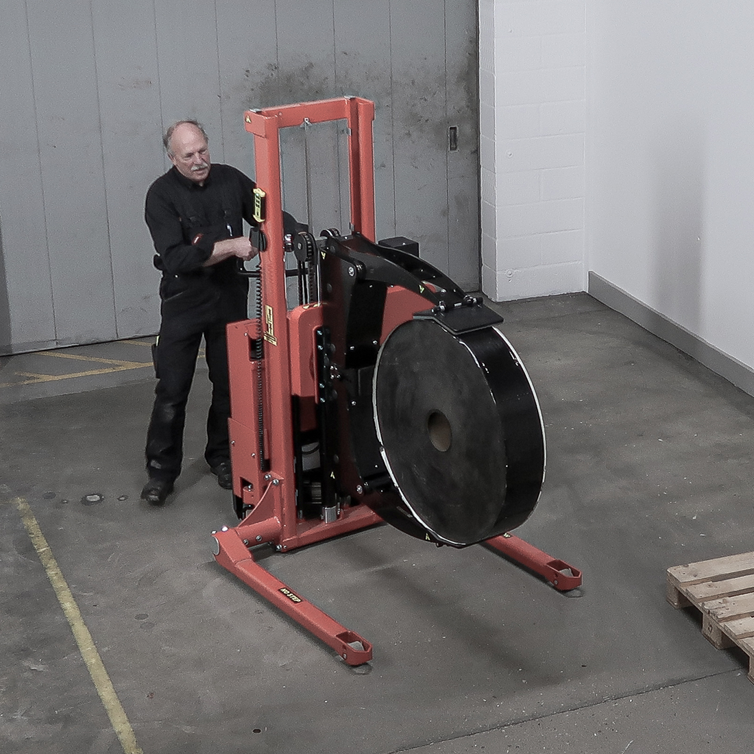 If you need to transport, lift or rotate heavy reels, e.g. placed on closed pallets, the electric reel rotator with straddle legs is a good match for you. It can grab and place reels placed on all types of pallets.