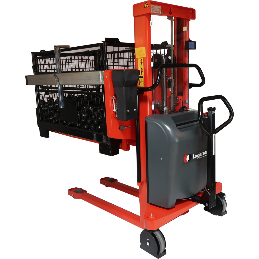 The Material Handling Rotator with non-adjustable box holders can tilt crates and boxes so that the user can reach the contents without stretching, bending and straining the back.